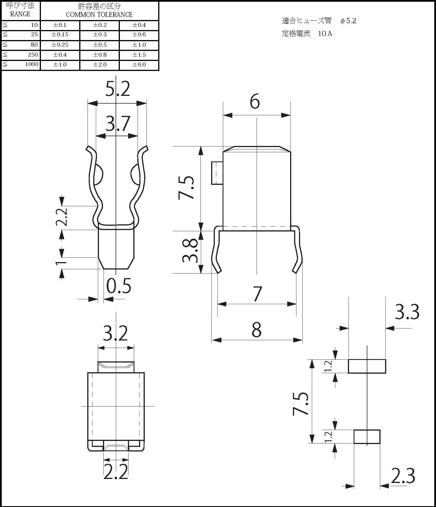 F-205 定格電流 10A 適合ヒューズ管 5.2φ